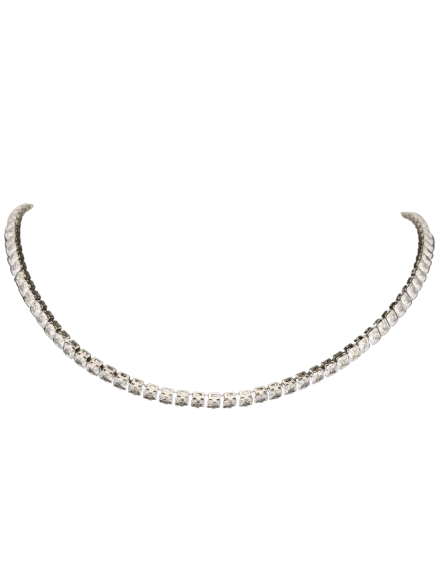 Εντυπωσιακό κολιέ απο ανοξείδωτο ατσάλι γεμάτο από λαμπερά ζιργκόν .