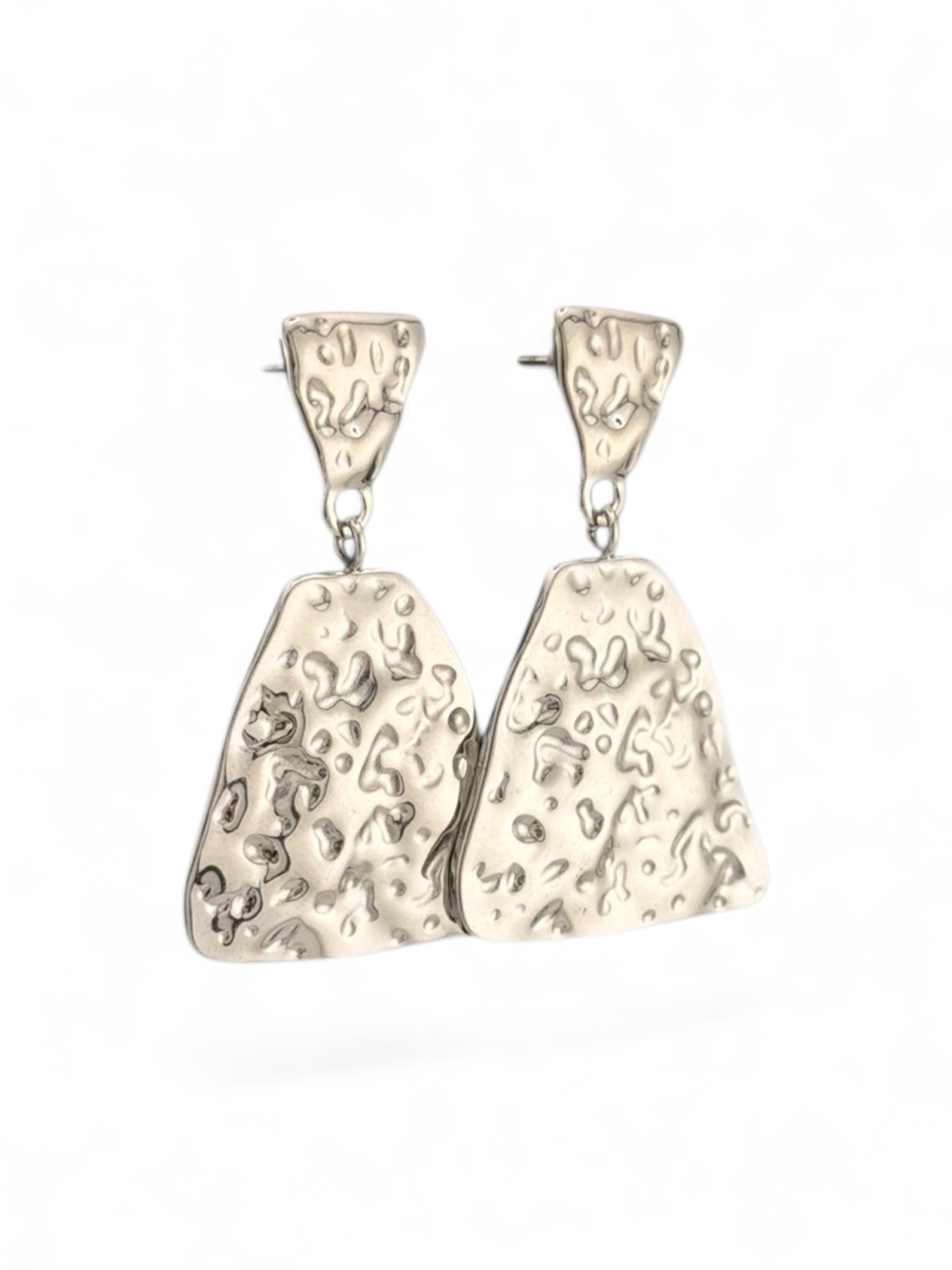 Κρεμαστά σκουλαρίκια από ανοξείδωτο ατσάλι με ανάγλυφη λεπτομέρεια .